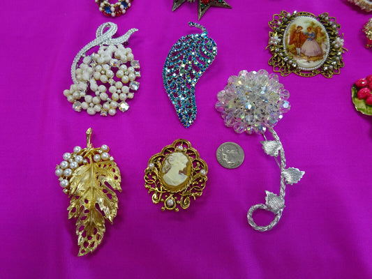 Huge Lot 30 Antique Brooches Pins Weiss Staffordshire Cara Trifari LC Selini W