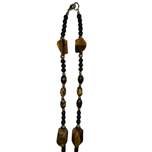 Tiger's Eye Quartz and Black Onyx Beaded Necklace