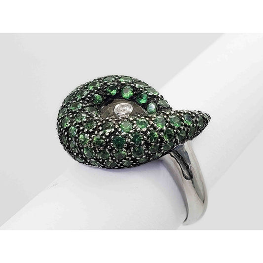 LeVian Tsavorite Garnet & Diamond Statement Ring 18k White Gold Size 7
