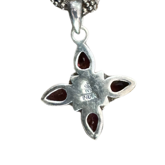 Faceted Garnet and Cultured Pearl 925 SS Necklace