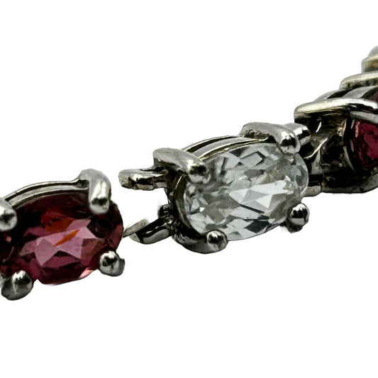 Garnet/White Sapphire Oval Gemstone 8" Tennis Bracelet - 24 Stones