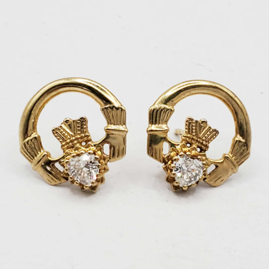 Irish Pear CZ Claddagh Love Loyalty Friendship Earrings 9k Gold
