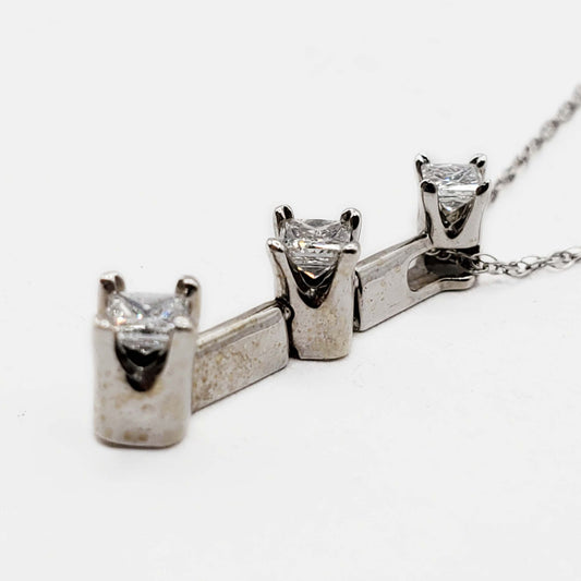 0.3 ctw Princess Diamond Past Present Future 3-Stone Pendant 14k White Gold