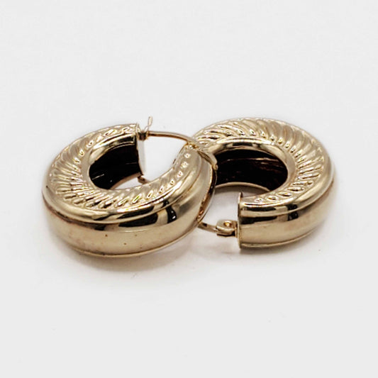 Shrimp Rib Polished Finish Huggie Hoop Earrings 10k Gold