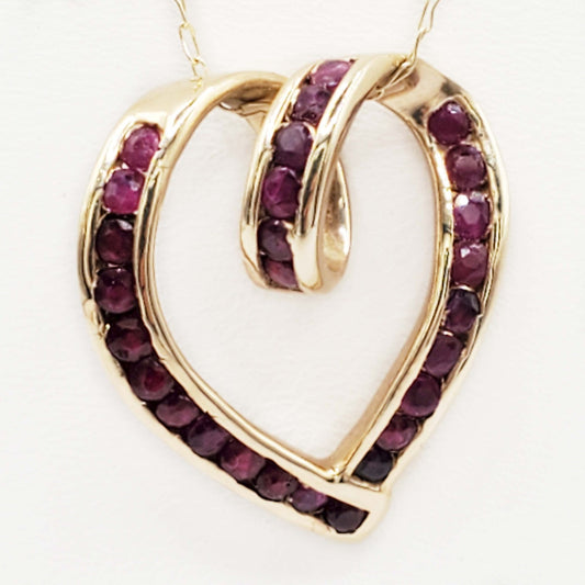Ruby Channel-Set Heart Pendant 10k Yellow Gold