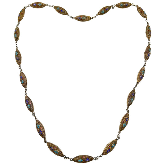 Vintage Chinese Export Gilt Silver Enamel Cloisonné Filigree - 26" Necklace