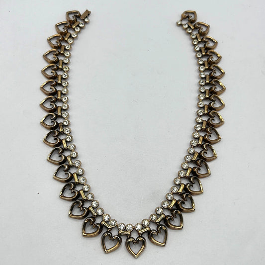 Crown Trifari 1950s Diamante Heart Set Sterling Silver Necklace & Bracelet