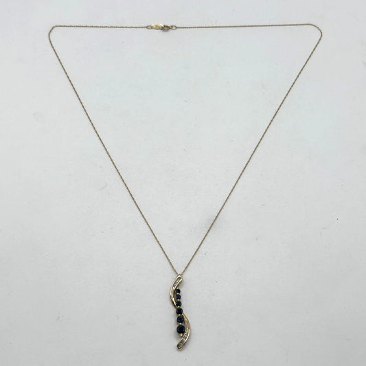 Sapphire & Diamond Journey Pendant 10k Yellow Gold 18" Necklace