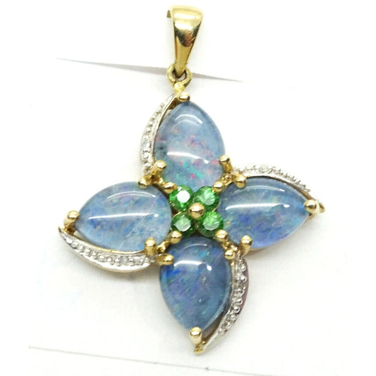 Natural Opal Triplet & Diamond Pendant 10K Yellow Gold