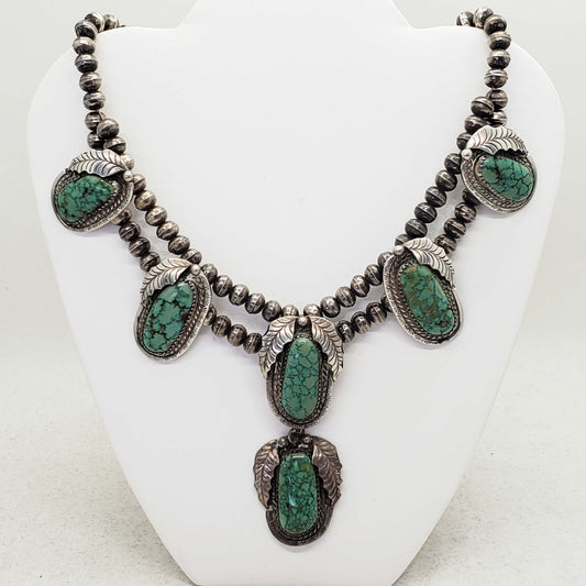 Southwestern Turquoise Station Sterling Silver Bead Collar Necklace 17"