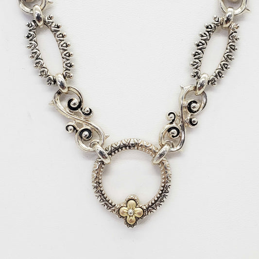 Barbara Bixby 18k Gold Accent & Sterling Silver Flower Scroll Necklace 18"