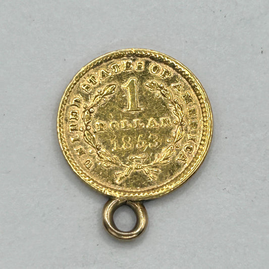 Genuine 1853 Liberty Head $1 Coin Pendant 21.6k Yellow Gold - 1.8g