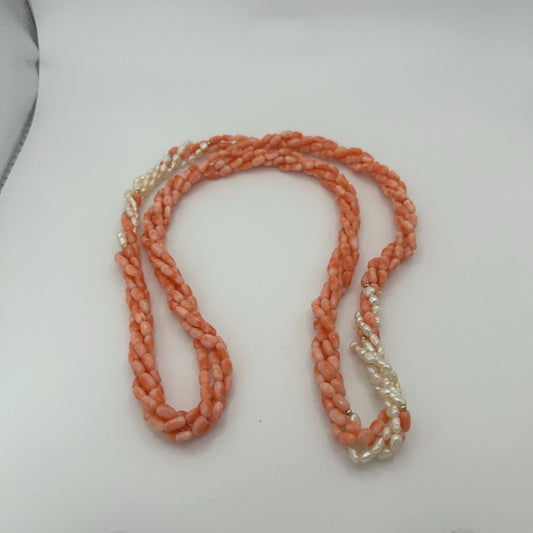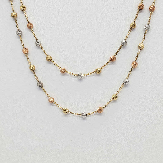 Tri-Color Bead Double Layer Chain Necklace 14k Yellow White Rose Gold