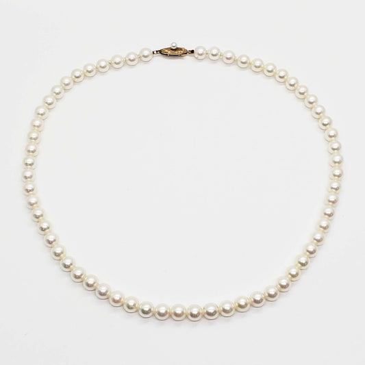 6.5-7mm Wide Cultured Pearl Bead Strand Necklace 14k Gold Clasp 17" Long