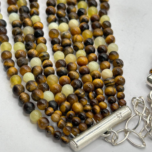 Jay King Mine Find Tigers Eye Yellow Opal 10-Strand 16.5" Necklace 925 Sterling