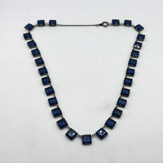 925 Sterling Silver and Blue Rhinestone Station Link Necklace 17"