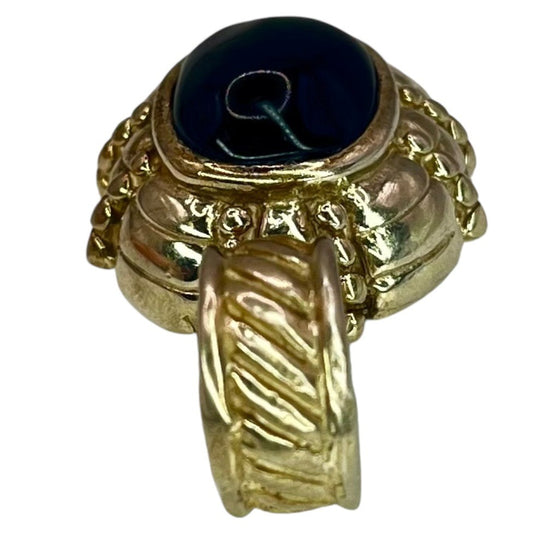 Silver Necklace Pendant Black Stone Cabochon Intricate Ornate Chunky