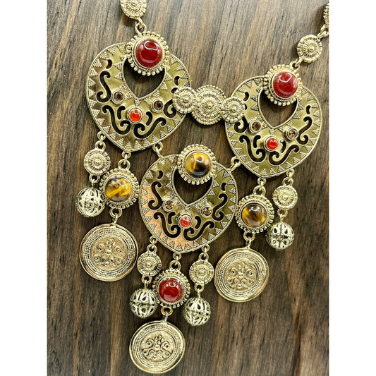 R.J. Graziano Gold Tone Necklace Large Neck Wear Armour Coin Dangle Filigree