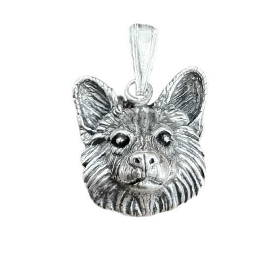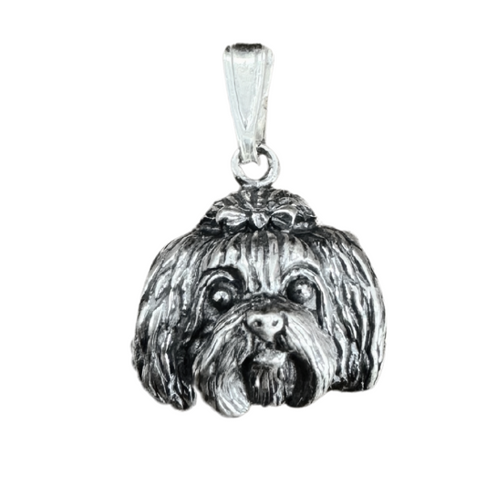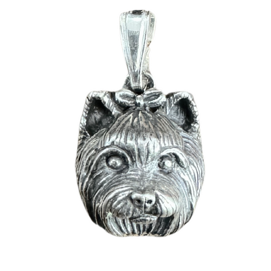 SS Yorkshire Terrier w/bow Bark Beads Pendant