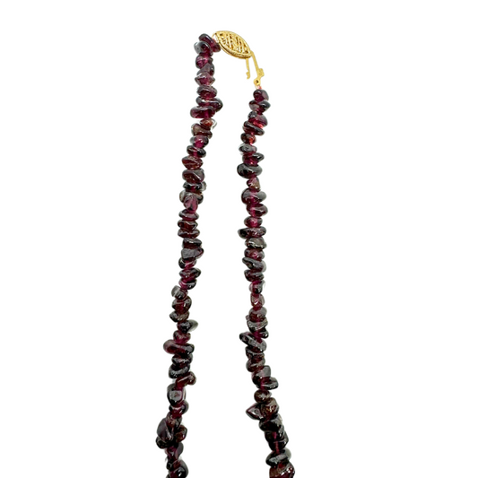 Vintage 14K Gold Clasp Garnet Chip Beaded Necklace