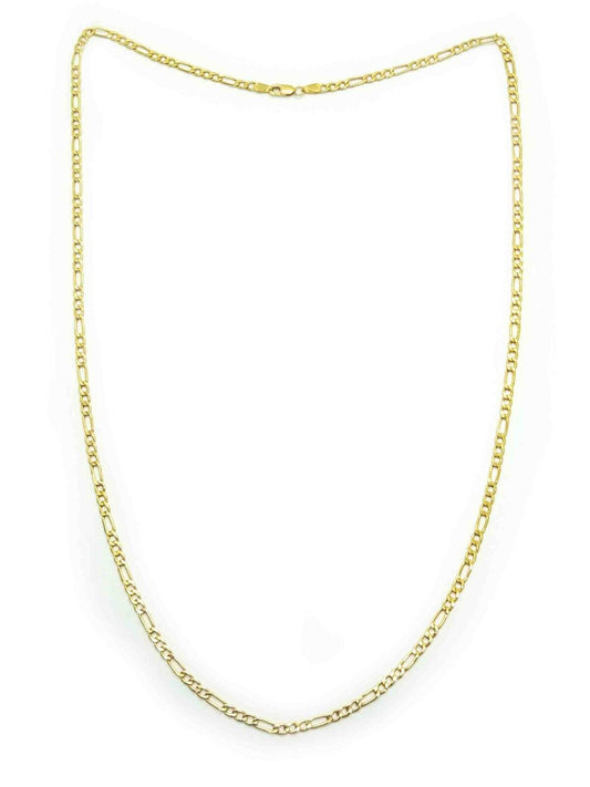 3mm Wide Italian Hollow Figaro Link Chain Necklace 14k Gold 24" Long 3 Grams