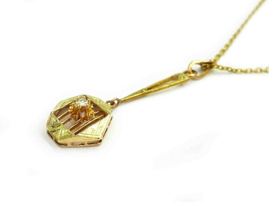 Vintage 1920s Natural Diamond Lavalier Drop Pendant 14k Gold