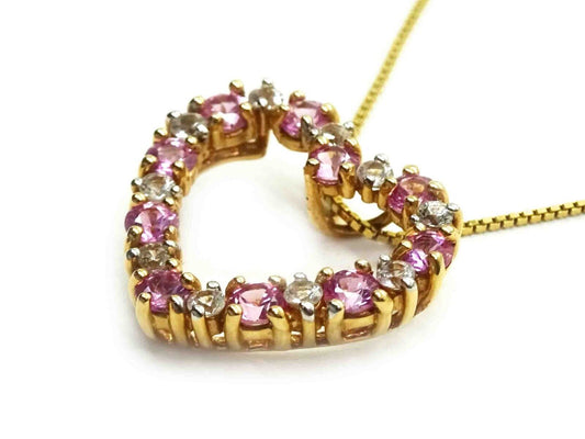 Pink & White CZ Open Heart Charm Pendant Box Chain Necklace 14k Gold
