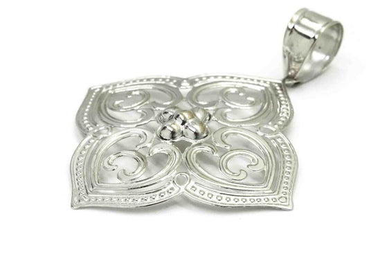 Light Quatrefoil Design Open Filigree Pendant 14k White Gold