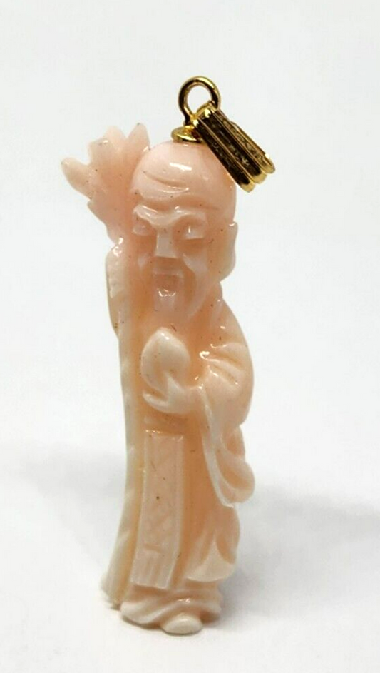 Vintage Mid-Century Carved 3D Coral Gold Filled Figurine Charm Pendant 1.375''