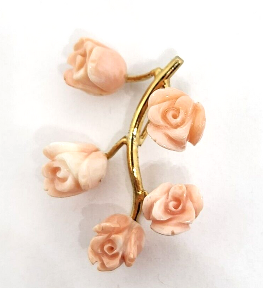 Vintage Carved Angel Skin Coral Rose Flower Gold Filled Pendant 1"