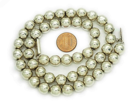 Mexico 10mm Wide Sterling Silver Bead Necklace 20" Long 78.4 Grams