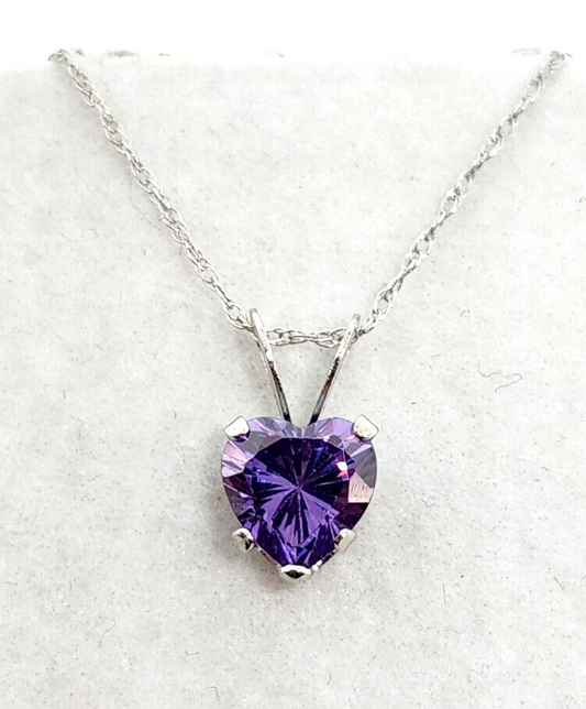 Heart Purple CZ 10k White Gold Necklace, 18'' Long