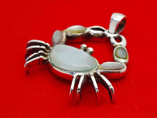 Mother of Pearl Inlay Crab Pendant Sterling Silver Cancer Zodiac Beach