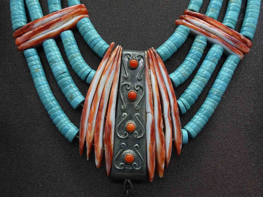 Vintage Native American Turquoise & Spiny Oyster Heishi Ceremonial Necklace