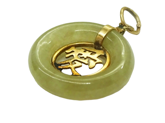 Natural Jade Round Love Charm Pendant 14k Gold