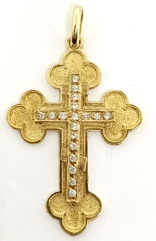 Gorgeous Engraved 14k Yellow Gold Cubic Zirconia Cross Pendant