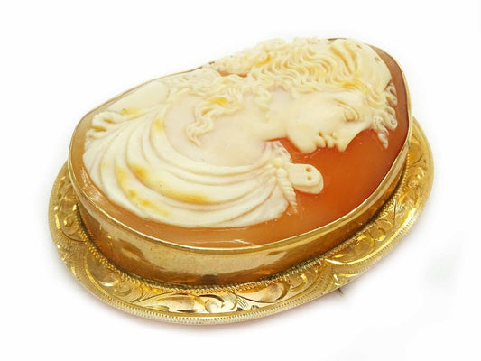 Large Finely Detailed Victorian Shell Cameo Brooch Pin Pendant 10k Gold