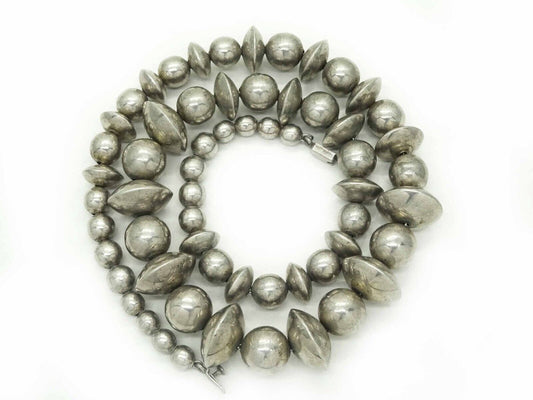 Vintage Mexico Sterling Silver Round & Saucer Bench Bead Necklace 28"