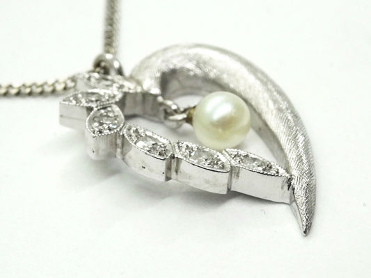 Pearl Dangle & Diamond Open Heart Pendant 14k White Gold Chain 10k White Gold
