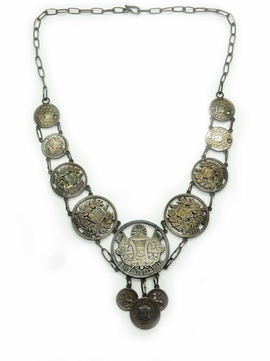 Antique Early 20th Century Cut Coin Silver Necklace Guatemalan Reals 1863-1899