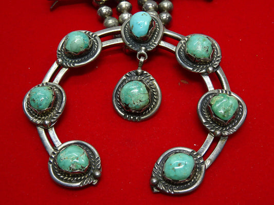 Vintage Southwestern Turquoise Nugget Squash Blossom Necklace 27" 240 Grams