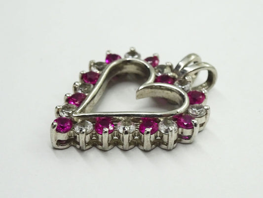 Ruby & CZ Open Heart Pendant Rhodium Plated
