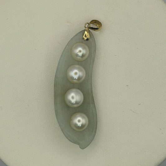 Green Jade Pearl 14k Yellow Gold Bail Pea Pod Necklace Pendant