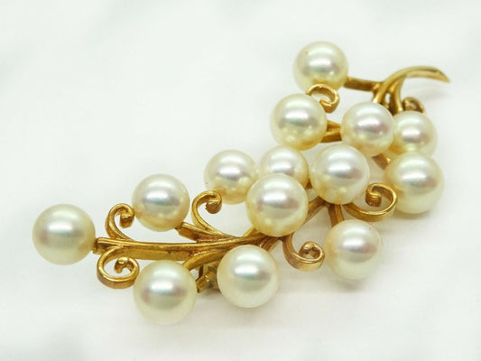 Mikimoto Akoya Pearl Swirling Branch Brooch Pin 14k Gold