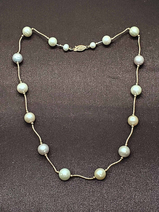 Vintage Imperial Cultured Pearls 7mm Bead Choker Necklace 14k White Gold 15.5"