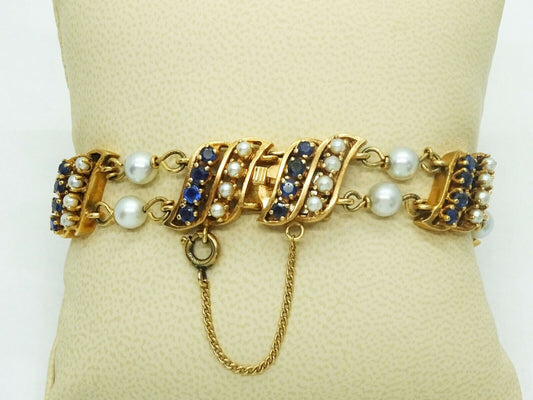 Vintage Honora Designer Natural Pearl & Sapphire Bracelet 14k Gold