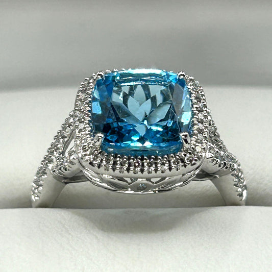 14k White Gold .17ctw VS2, I Diamond & Blue Topaz Split Shank Ring - Size 7