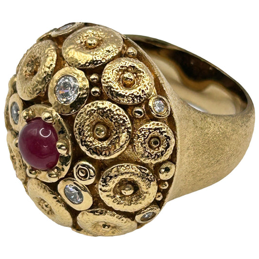 Rivka Friedman Dome Red Cab Clear Crystal 18k Gold Plated Ring - Size 10.75