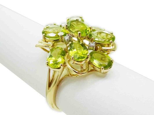 Natural Peridot & Earth Mined Diamond Cluster Ring 14k Gold Size 11