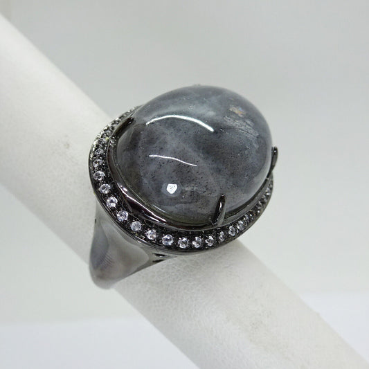 Huge 14ct Labradorite Cabochon Sterling Silver Ring, East West Setting Size 6.25